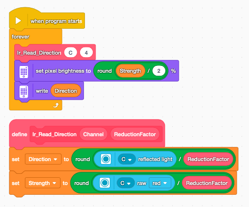 Direction_n_Strength = IrReadDirection(port.C, 4)
