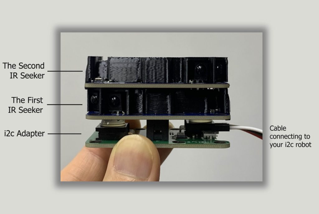 The IR Seeker hardware configuration is very much similar to how you would set it up with QikEasy Expander for Spike Prime, a QikEasy IR Seeker stack consists of a series of boards chained together.