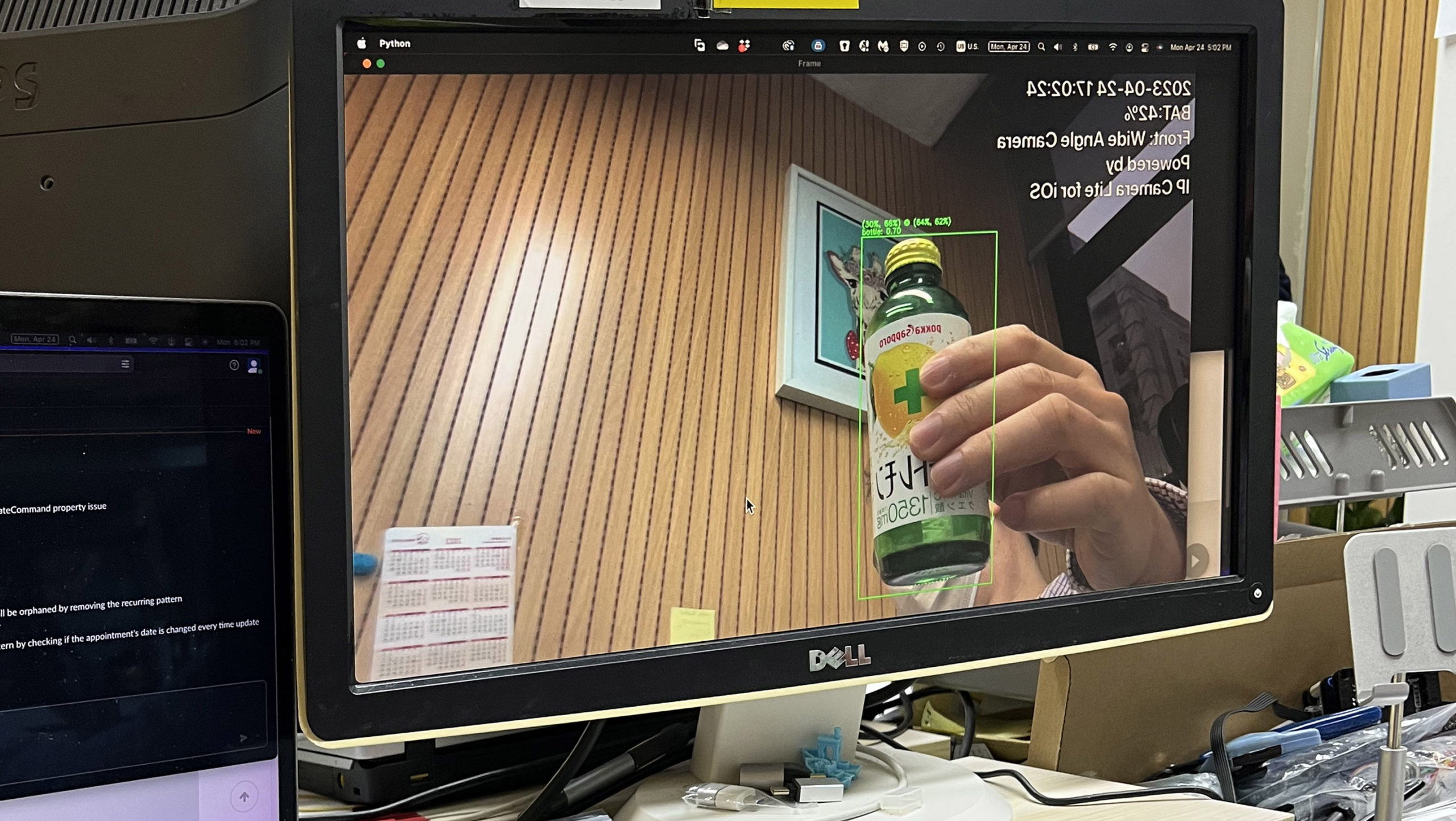 cv2.putText(flipped_frame, text, (int(obj[0]), int(obj[1]) - 5), cv2.FONT_HERSHEY_SIMPLEX, 0.5, (0, 255, 0), 2)