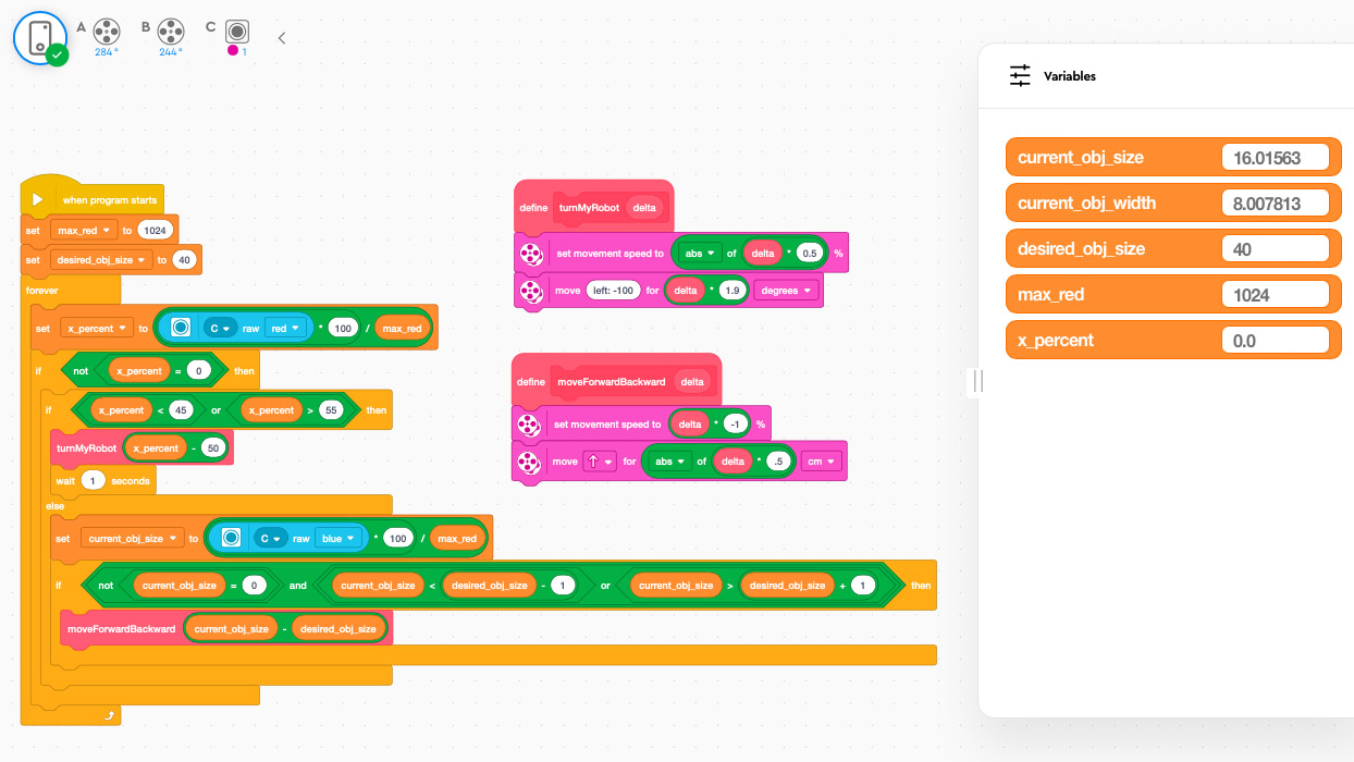 w_percent = int((obj_size[0] / h) * 100 )	   # note that this is normalized as a % of the frame's height